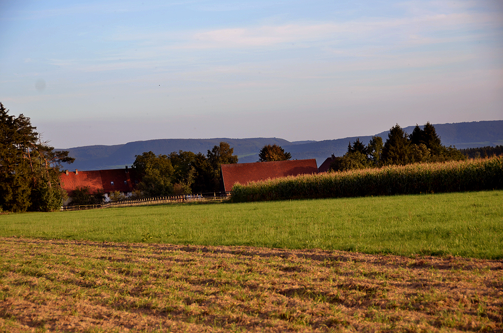 ![]() Blick über die Mooswiese zur Schwäbischen Alb. |