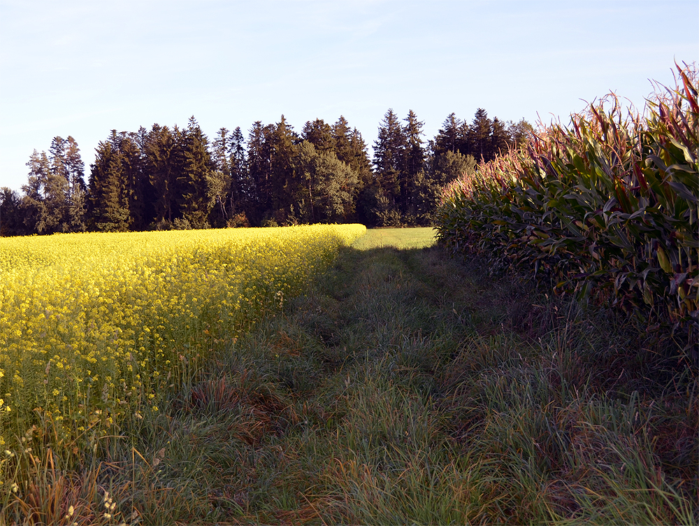 ![]() Gegensätze - blühender Raps und erntereifer Mais. |