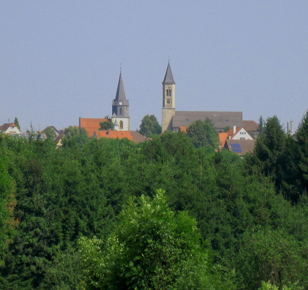 Mutlangen kommend, unsere beiden Kirchen. |