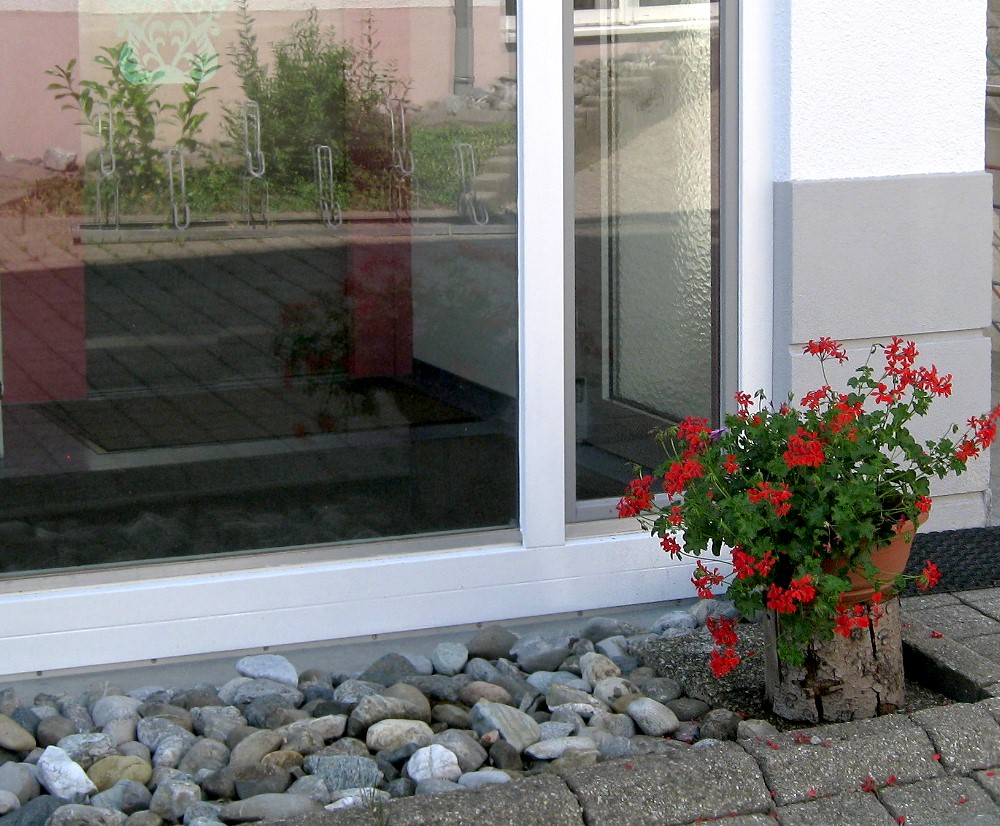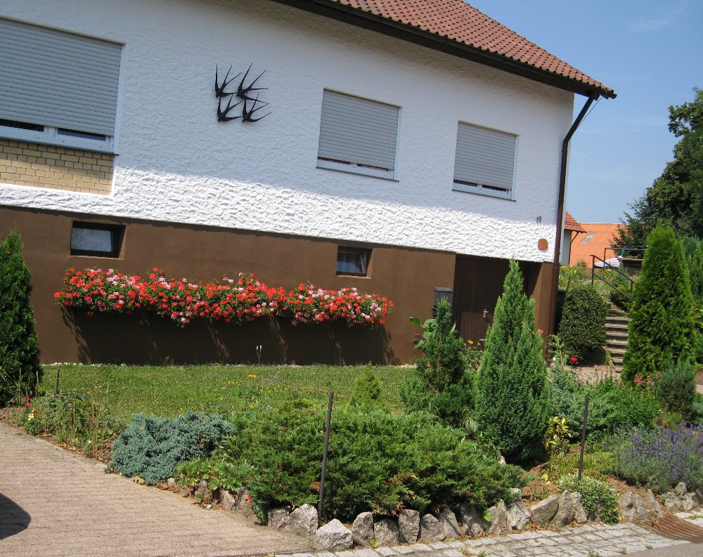 dem Haus und Geranien vorm Fenster... |